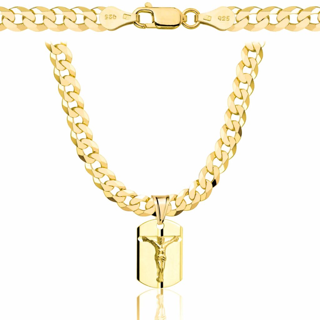Pozłacany srebrny łańcuszek pancerka z medalikiem 925 585 – 5,6 mm