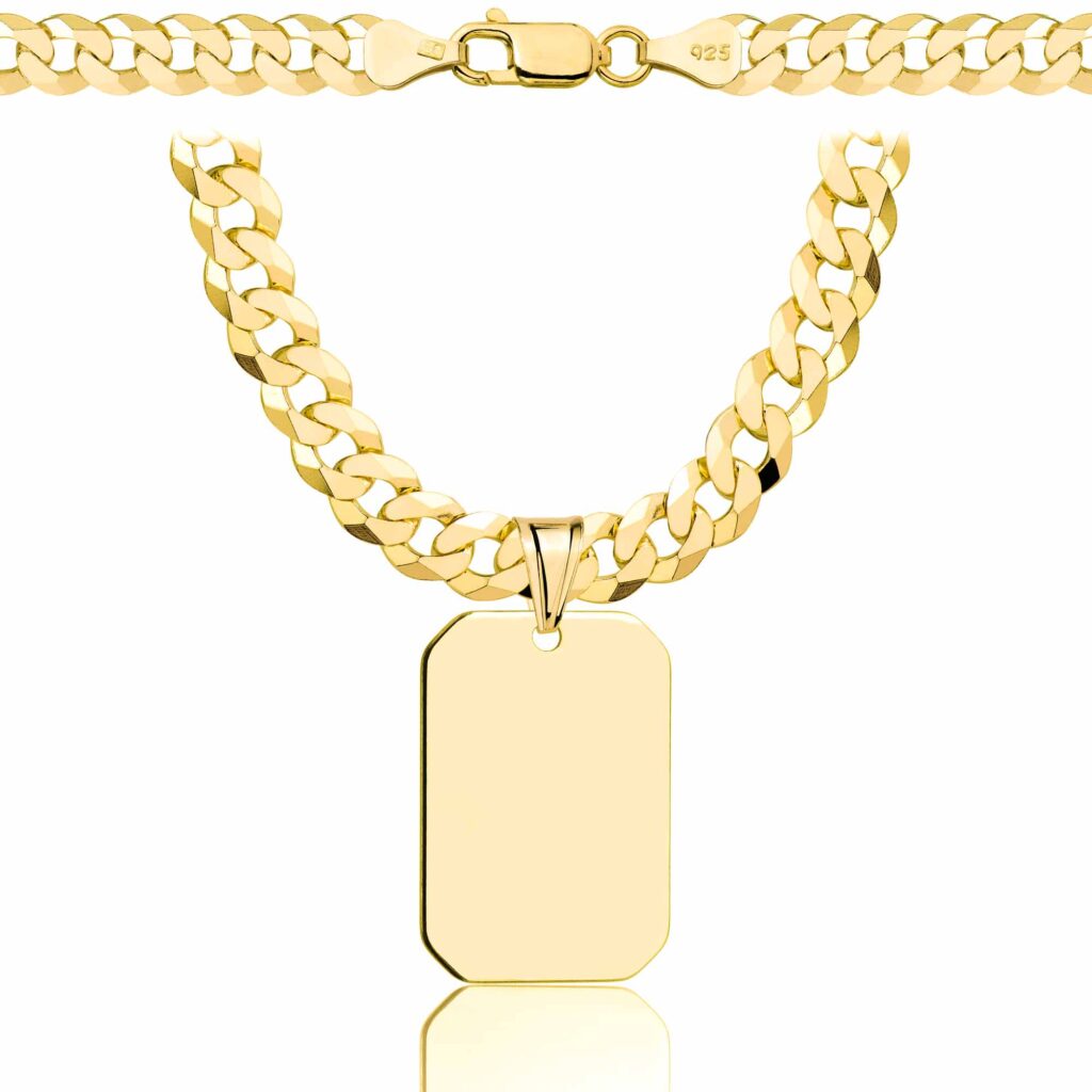 Dzięki możliwości grawerunku na nieśmiertelniku, ten pozłacany srebrny łańcuszek staje się unikalnym prezentem. Wybierając na nim imię, datę lub inną ważną wiadomość, nadajesz biżuterii indywidualny charakter, który na pewno zachwyci obdarowaną osobę. Taki łańcuszek pancerka z nieśmiertelnikiem to znakomity wybór na każdą okazję.