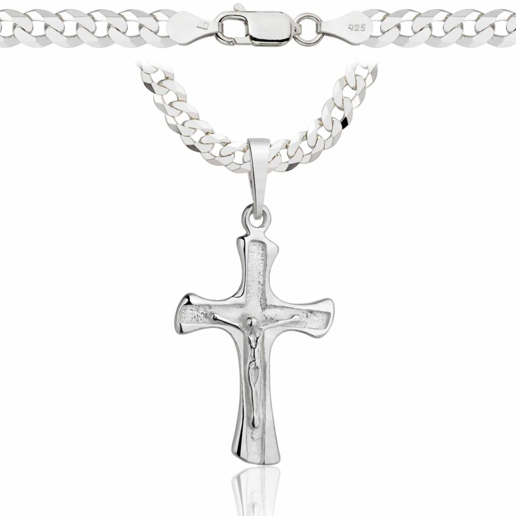 Srebrny łańcuszek Pancerka z krzyżykiem 925 – 5mm