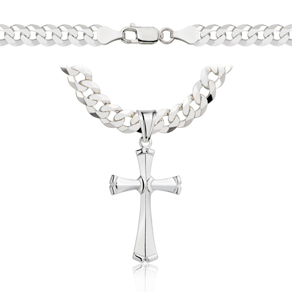 Srebrny łańcuszek Pancerka z krzyżykiem 925 – 6,5mm