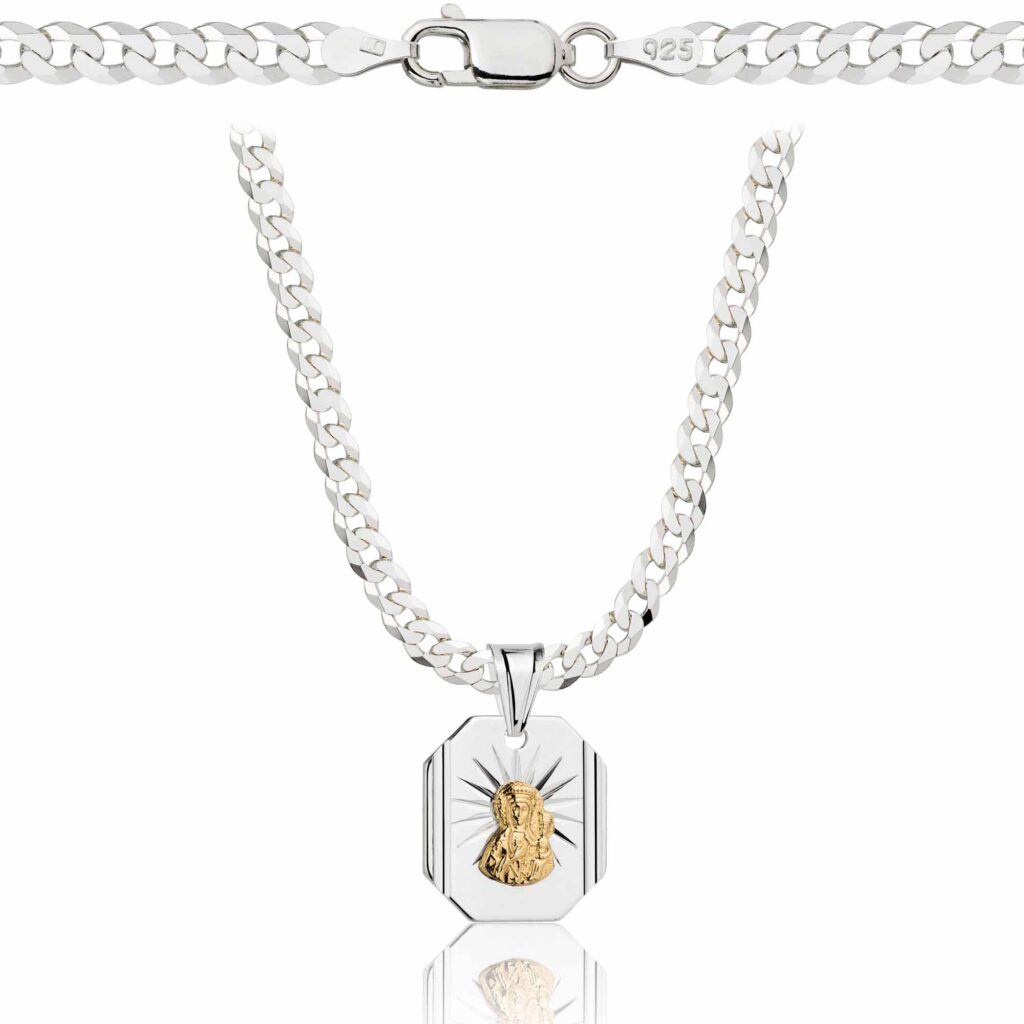 Srebrny łańcuszek pancerka z medalikiem 925 – 3,8 mm