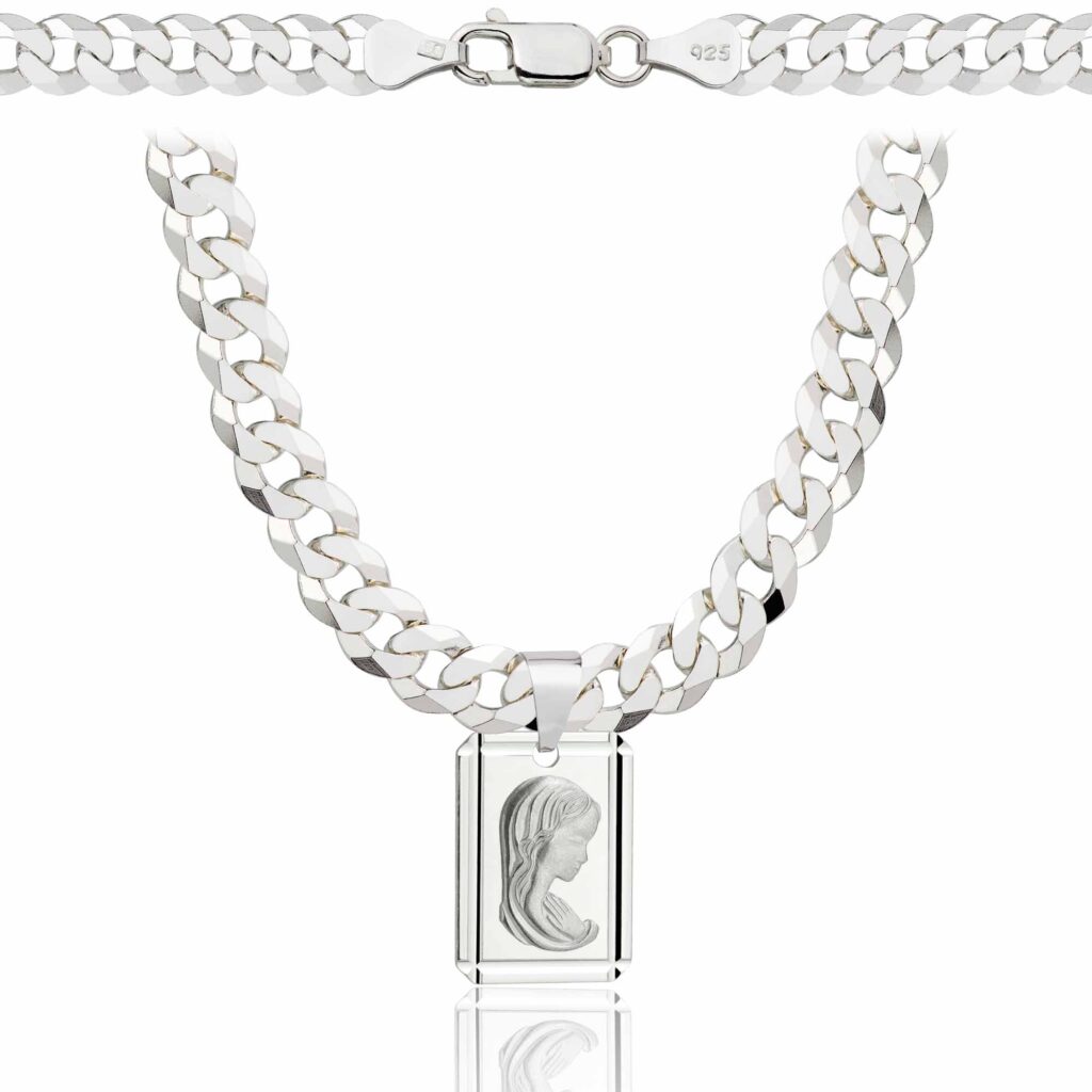 Srebrny łańcuszek pancerka z medalikiem 925 – 6,5 mm