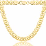 Szerokość 9 mm sprawia, że łańcuszek jest wyrazisty i imponujący, co czyni go idealnym dodatkiem dla osób, które cenią sobie klasykę z nutą luksusu. Proces pozłacania odbywa się za pomocą kąpieli złotniczych z użyciem najwyższej jakości preparatów galwanicznych, co zapewnia trwałą i równomierną warstwę złota, która zachowuje swój blask przez długi czas. Solidna konstrukcja gwarantuje, że łańcuszek pozostanie piękny i wytrzymały, oferując luksusowy wygląd na lata.