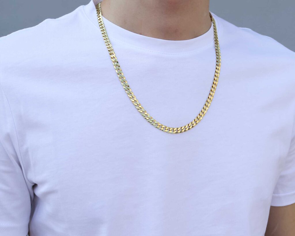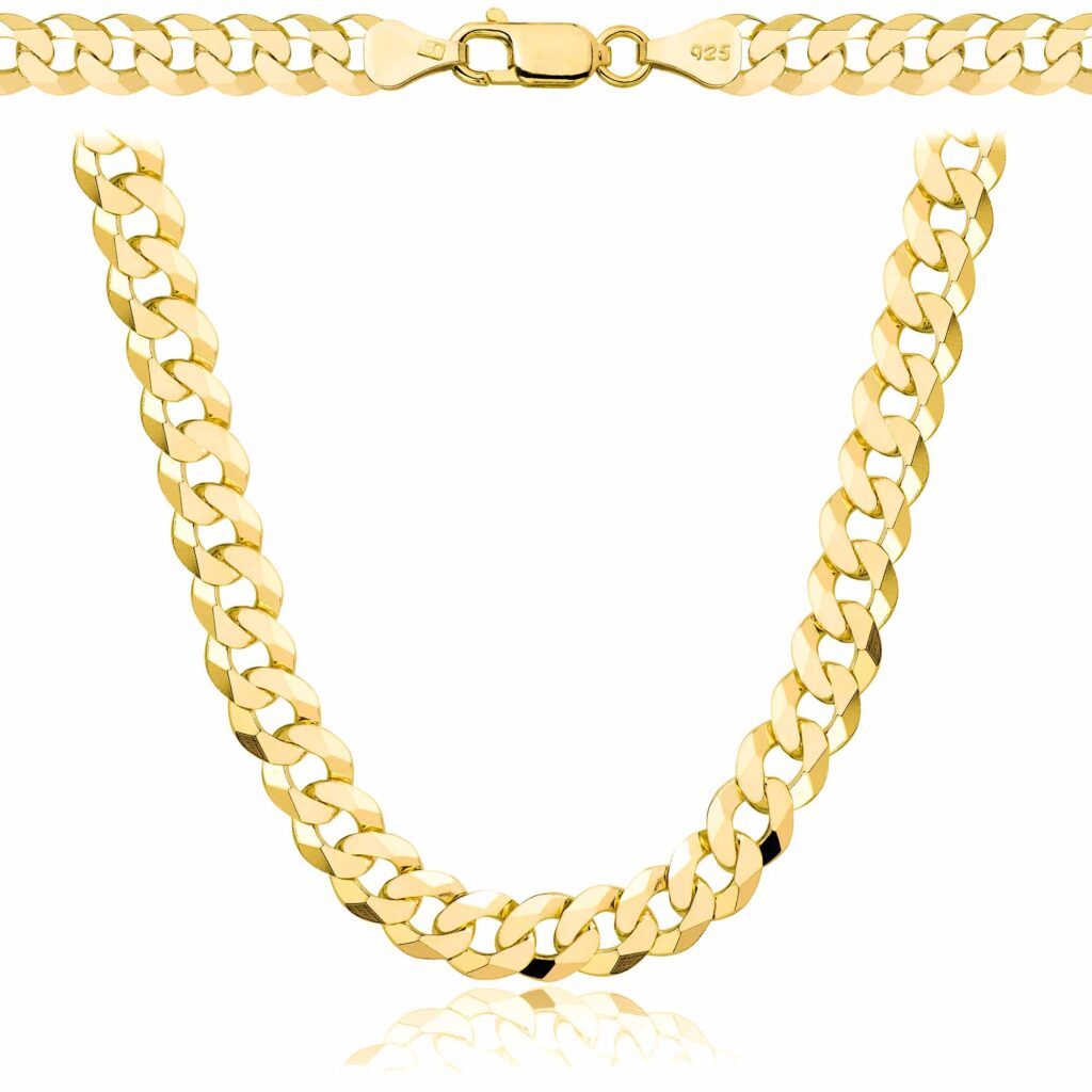 Szerokość 6,5 mm zapewnia, że łańcuszek jest wyrazisty, ale wciąż subtelny, co czyni go idealnym dodatkiem dla osób, które cenią sobie elegancję z nutą luksusu. Proces pozłacania odbywa się poprzez kąpiele złotnicze z użyciem najwyższej jakości preparatów galwanicznych, co zapewnia trwałą i równomierną warstwę złota, która zachowuje swój blask przez długi czas. Solidna konstrukcja gwarantuje, że łańcuszek będzie piękny i wytrzymały, oferując luksusowy wygląd na lata.